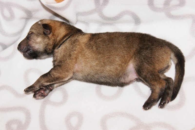 Il est très typé, avec un beau masque, des yeux clairs et bien en amandes. Il a déjà une construction osseuse très forte